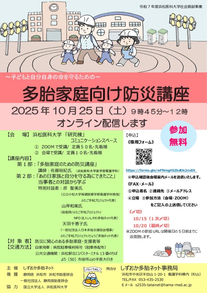 10月25日(土) 多胎家庭向け防災講座のお知らせ